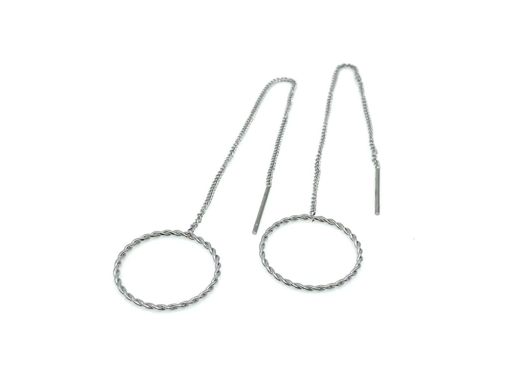Krásné dámské protahovací náušnice z oceli (316L) zdobí řetízek typu anker a na konci kolečko, které je jemně zdobené. Šperk potěší ženu či dívku.Doplňkové parametry