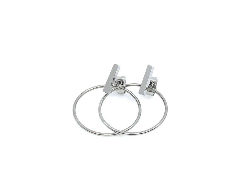 Dámské visací náušnice z oceli (316L) mají tvar kolečka, které je hladké. Horní část zdobí lesklá tyčka. Zapínání je na puzetu. Krásné náušnice pro speciální ženu.Doplňkové parametry