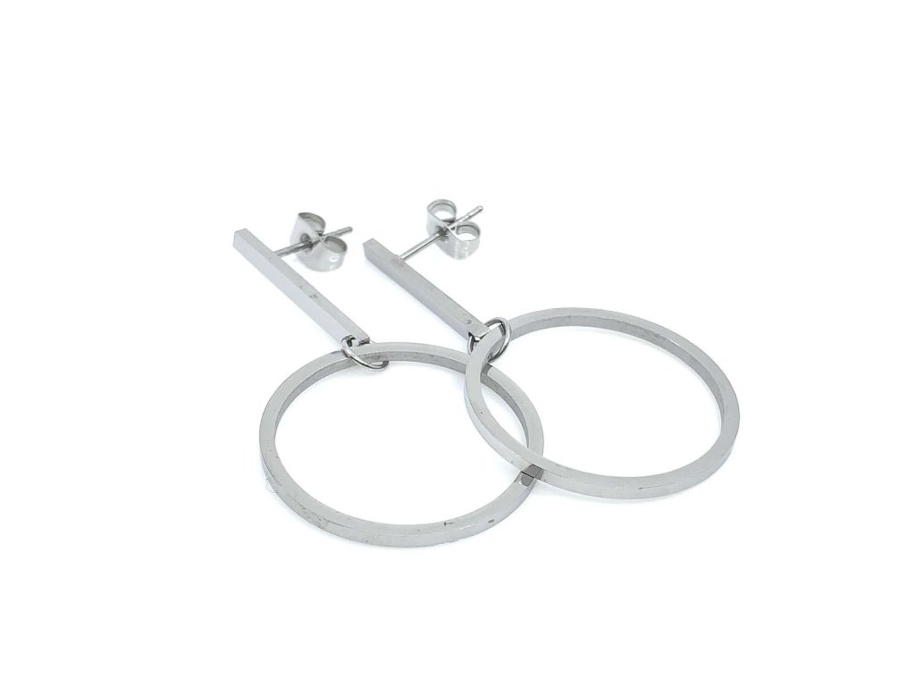 Dámské visací náušnice z oceli (316L) zdobí tyčka na které je zavěšeno kolečko. Šperk je v provedení velkého lesku. Zapínání je na puzetu. Krásné náušnice pro neobyčejnou ženu.Doplňkové parametry