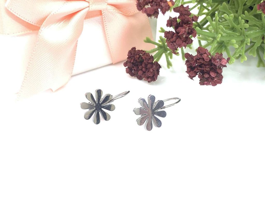 Dámské náušnice z oceli (316L) . Ozdoba má tvar hladké kytky. Zapínání je na klapku.Doplňkové parametry