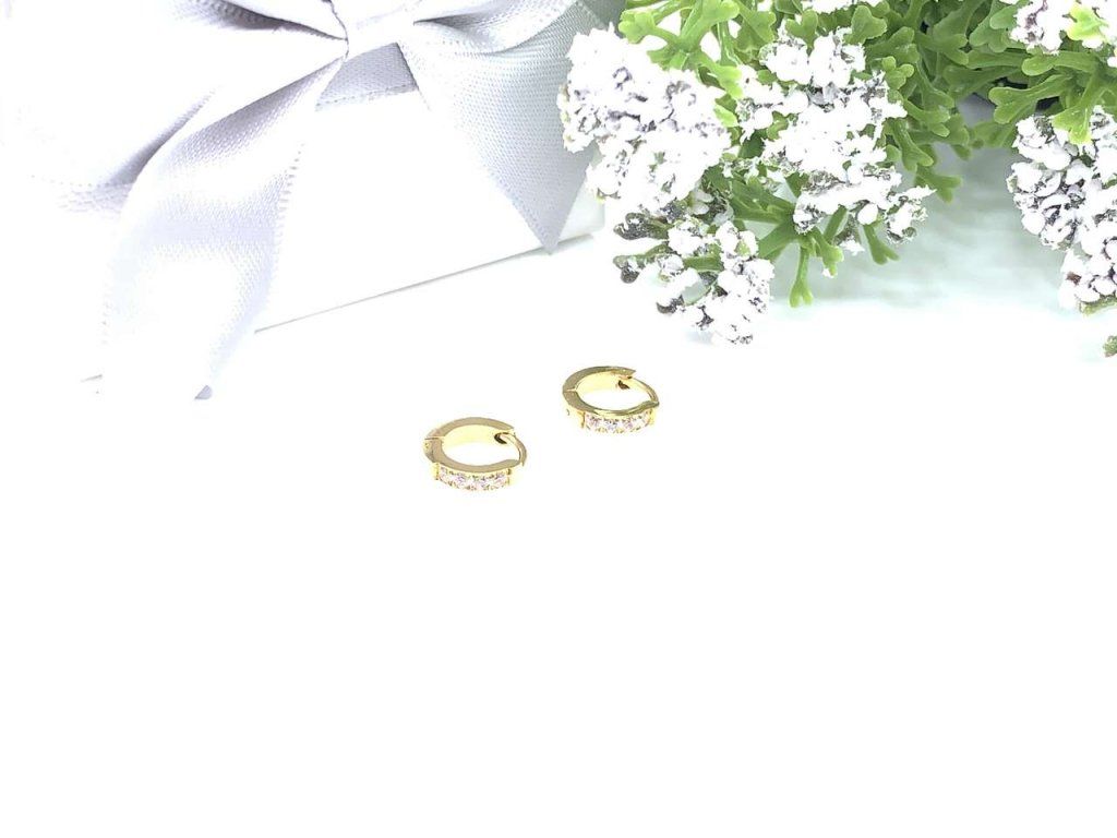 Elegantní dámské náušnice z oceli (316L). Náušnice jsou pozlacené do žluté barvy a mají tvar kruhů, které jsou zdobené bílými zirkony.Doplňkové parametry
