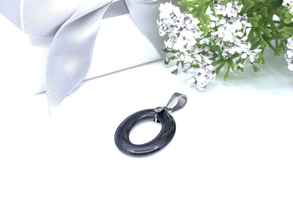 Moderní dámský přívěsek z oceli (316L) ve tvaru oválu. který je tvořen z černé keramiky.Doplňkové parametry