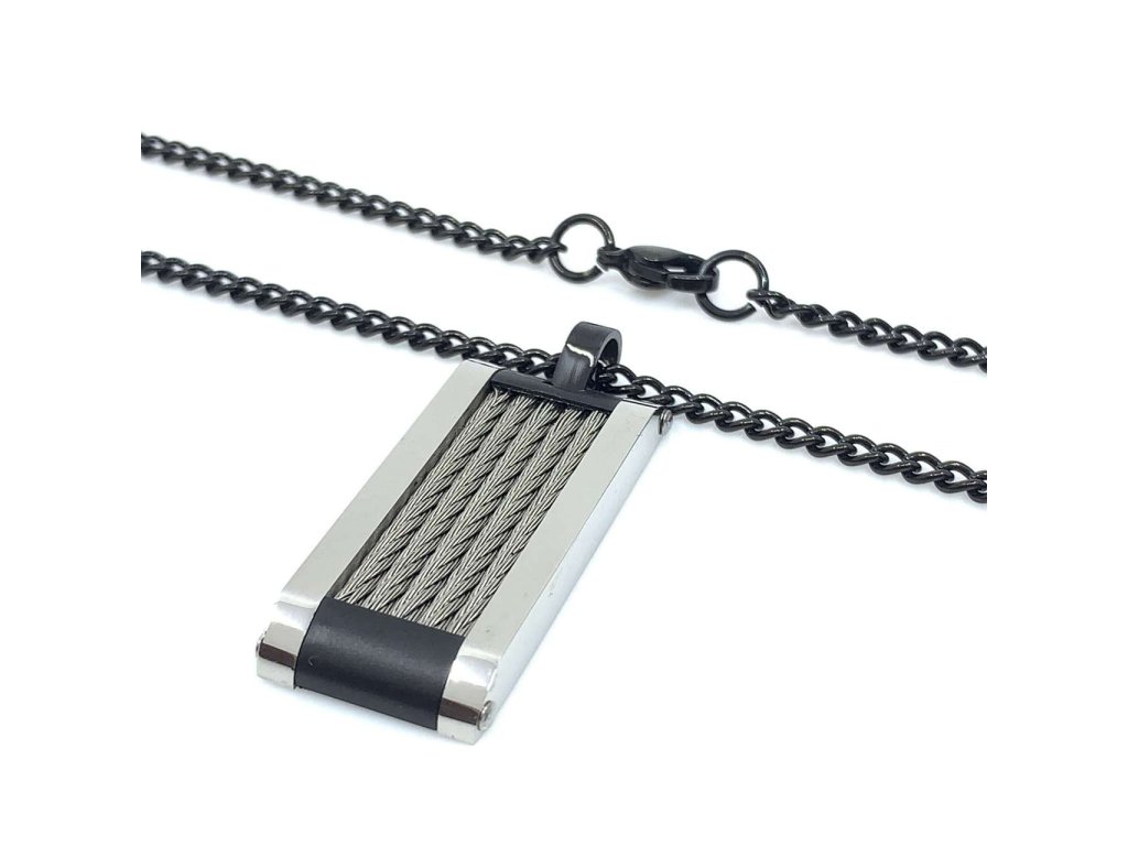 Elegantní pánský řetízek s přívěskem z oceli ( 316L ). Přívěsek má tvar hladké destičky, která má střed černý. Řetízek je typu anker s povrchovou černou úpravou.Doplňkové parametry
