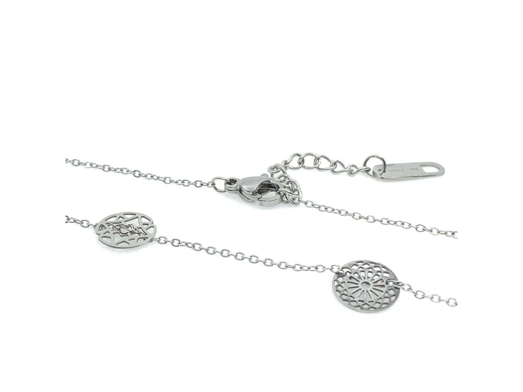 Dámský řetízek se třemi přívěsky z oceli (316L) s nastavitelnou délkou. Přívěsky jsou ve tvaru koleček, která jsou jemně zdobena. Krásný šperk pro výjimečnou ženu.Doplňkové parametry