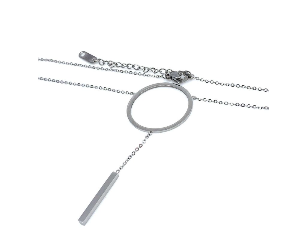 Luxusní dámský přívěsek s řetízkem z oceli (316L). Řetízek je zdoben kruhem, pod kterým visí na řetízku tenký proužek o délce 2 cm.Doplňkové parametry