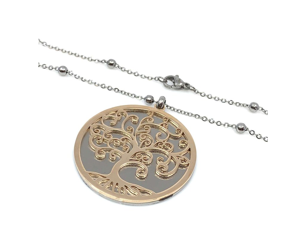 Nádherný řetízek s přívěskem z oceli (316L) potěší i náročnou ženu. Řetízek je typu anker , zdobený kuličkami v delším provedení s přívěsem s motivem stromu života, který je zdobený zlacením.Doplňkové parametry