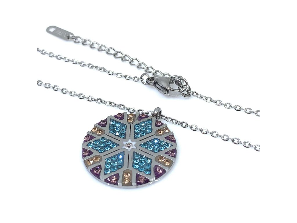 Krásný řetízek typu anker s přívěskem z oceli ( 316L). Přívěsek má kulatý tvar, který je zdoben různobarevnými zirkony do tvaru hvězdy. Zajímavý šperk pro vyjímečnou ženu.Doplňkové parametry