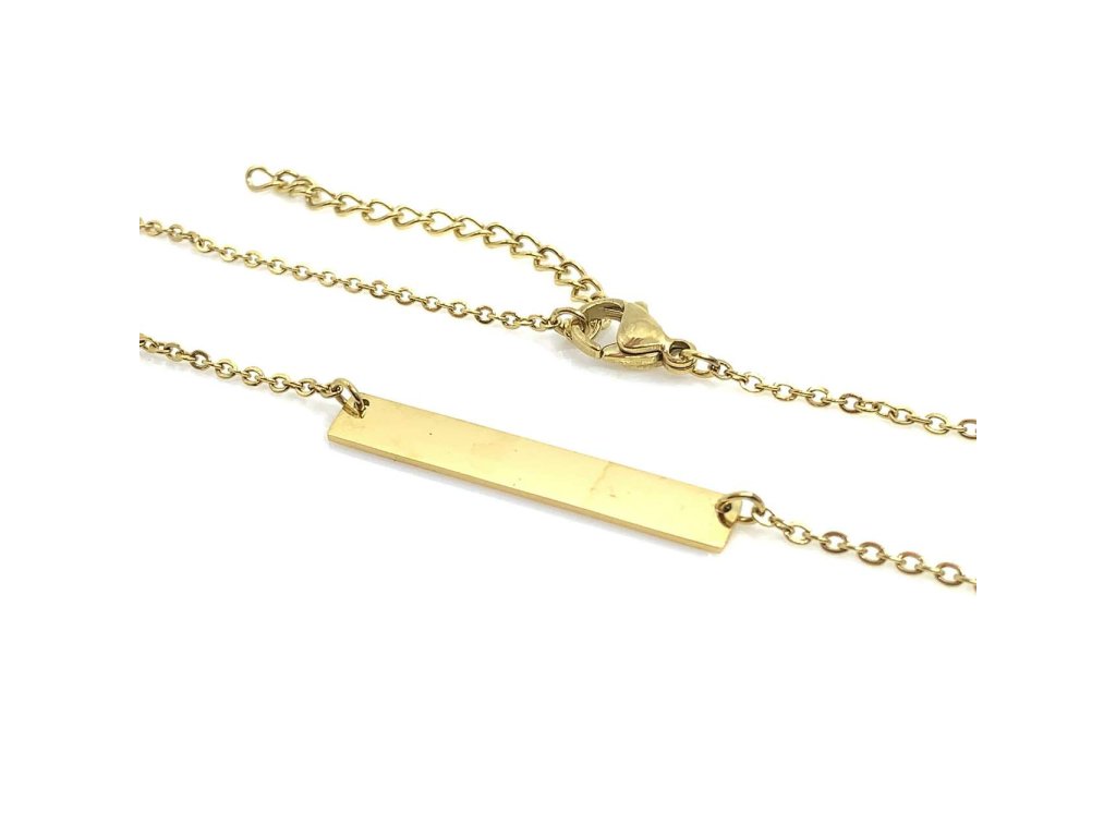 Exkluzivní pozlacený řetízek s přívěskem z oceli ( 316L) s nastavitelnou délkou. Přívěsek je ve tvaru hladké a lesklé destičky. Elegantní šperk, který perfektně padne ke každému outfitu.Doplňkové parametry