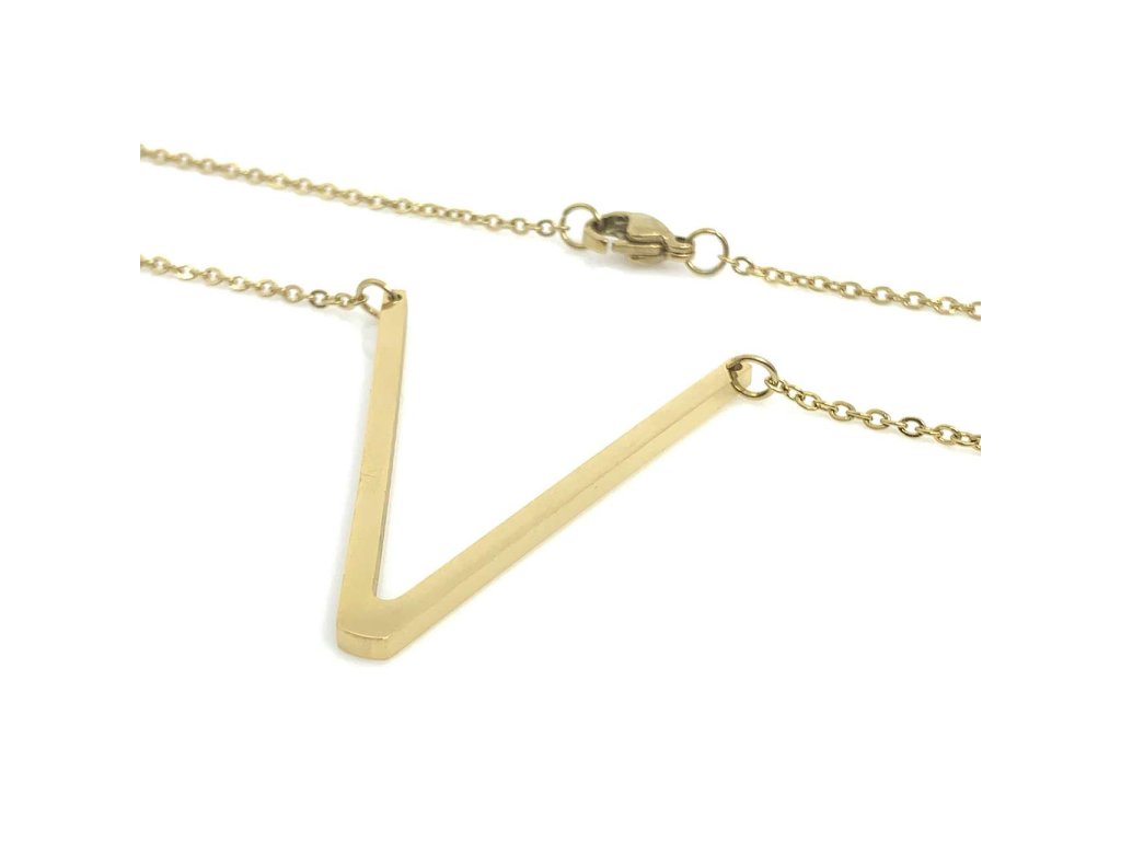 Skvostný pozlacený řetízek s přívěskem písmena V z oceli (316L) v délce 48 cm. Šperk je v provedení velkého lesku. Krásný šperk pro speciální ženu.Doplňkové parametry