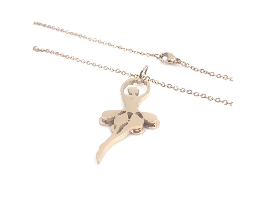 Kouzelný řetízek s přívěskem z oceli ( 316L) v barvě rose gold. Přívěsek je ve tvaru ladné baletky. Šperk je v provedení velkého lesku. Jedinečný a snový šperk pro milovnici tance.Doplňkové parametry