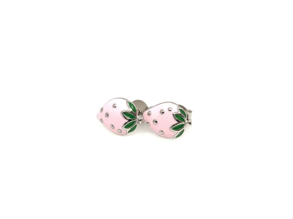 Moderní dámské náušnice ze stříbra (925/1000). Náušnice mají tvar jahody zdobené růžovým emailem, stopka je ze zeleného emailu. Zapínání je na puzetu. Šperk je chráněn povrchovou úpravou rhodiováním, které jej chrání před oxidací. Všechno naše zboží je značeno puncovními značkami uznanými Puncovním úřadem ČR.Doplňkové parametry