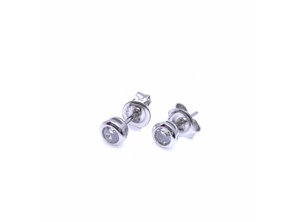 Hezké náušnice ze stříbra (925/1000). Mají kulatý tvar, který tvoří jeden bílý zirkon vsazený v hladké obrubě. Zapínání je na puzetu. Stříbro je povrchově upraveno rhodiováním proti oxidaci. Všechno naše zboží je značeno puncovními značkami uznanými Puncovním úřadem ČR.Doplňkové parametry