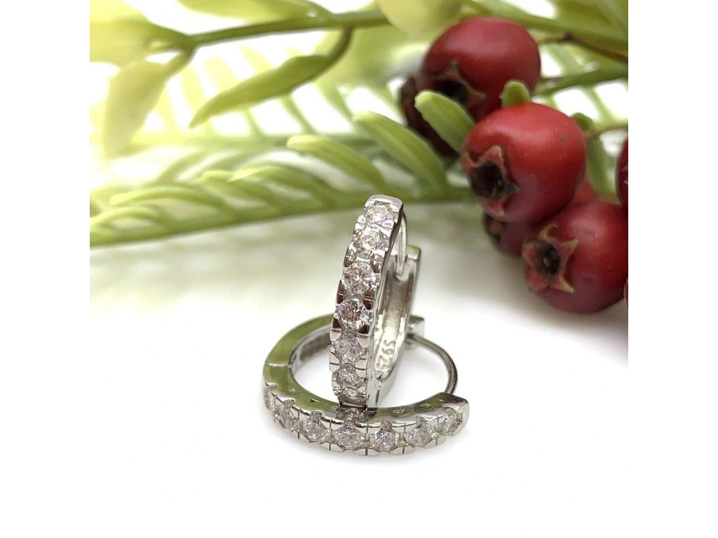 Krásné náušnice ze stříbra (925/1000) ve tvaru kroužků se zářivými bílými zirkony v kterých budete vypadat opravdu skvostně. Šperk je chráněn povrchovou úpravou rhodiováním, které jej chrání před oxidací. Všechno naše zboží je značeno puncovními značkami uznanými Puncovním úřadem ČR.Doplňkové parametry