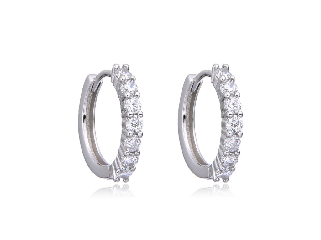 Krásné náušnice ze stříbra (925/1000) ve tvaru kroužků se zářivými zirkony v kterých budete vypadat opravdu skvostně. Šperk je chráněn povrchovou úpravou rhodiováním, které jej chrání před oxidací. Všechno naše zboží je značeno puncovními značkami uznanými Puncovním úřadem ČR.Doplňkové parametry