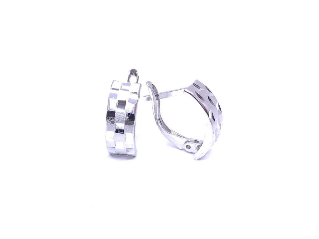 Krásné dámské náušnice ze stříbra (925/1000). Mají tvar půlkruhového obdélníku, který je zdobený broušením. Zapínání je francouzské. Povrchová úprava rhodiem zajistí šperku vyšší lesk a odolnost. Všechno naše zboží je značeno puncovními značkami uznanými Puncovním úřadem ČR.Doplňkové parametry