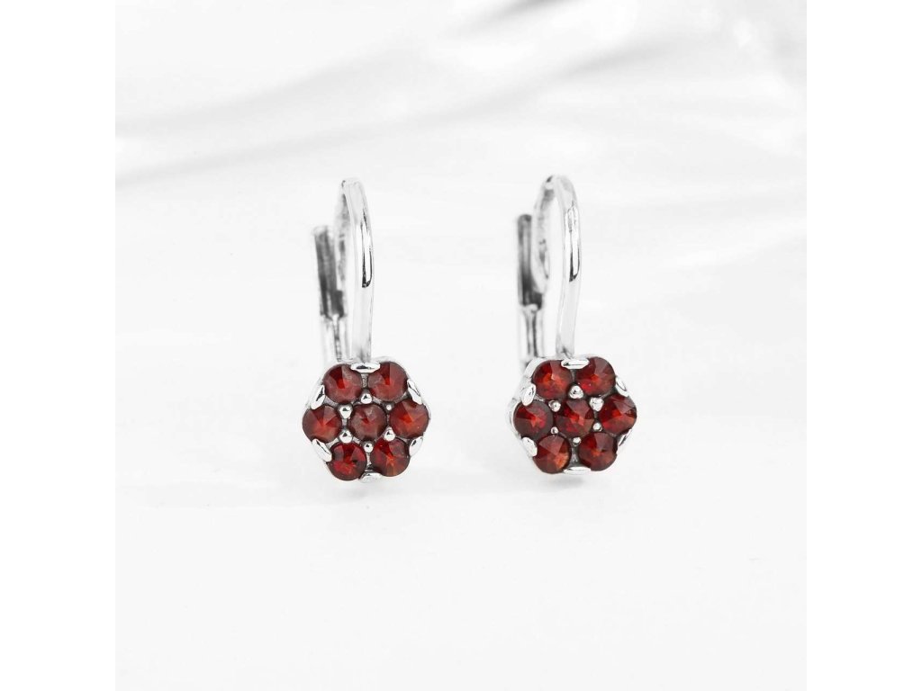 Krásné náušnice ze stříbra (925/1000) mají tvar drobnější kytičky, která je osazená Českými granáty. Zapínání je na klapku. Ke šperku obdržíte certifikát o pravosti kamene. Povrchová úprava rhodium poskytuje šperku ochranu proti oxidaci. Všechno naše zboží je označeno puncovními značkami uznanými Puncovním úřadem ČR."