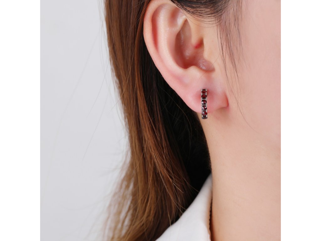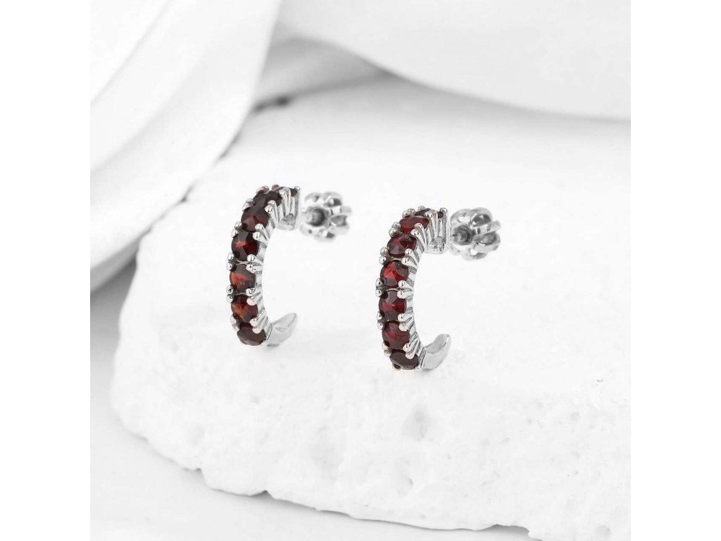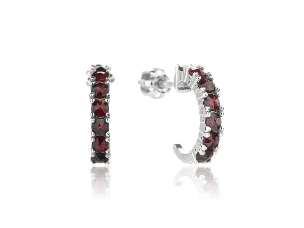 Dámské náušnice ze stříbra (925/1000) mají tvar půlkruhu, který je osázen Českými granáty. Zapínání je na šroubek. Ke šperku obdržíte certifikát o pravosti kamene. Šperk je chráněn povrchovou úpravou rhodiováním, které jej chrání před oxidací. Všechno naše zboží je označeno puncovními značkami uznanými Puncovním úřadem ČR.Doplňkové parametry