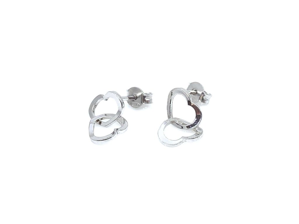 Dámské náušnice ze stříbra (925/1000) s ozdobou ve tvaru dvou srdcí zavěšených do sebe. Zapínání je na puzetu a jsou visací. Šperk je chráněn povrchovou úpravou rhodiováním, které jej chrání před oxidací. Všechno naše zboží je označeno puncovními značkami uznanými Puncovním úřadem ČR.Doplňkové parametry
