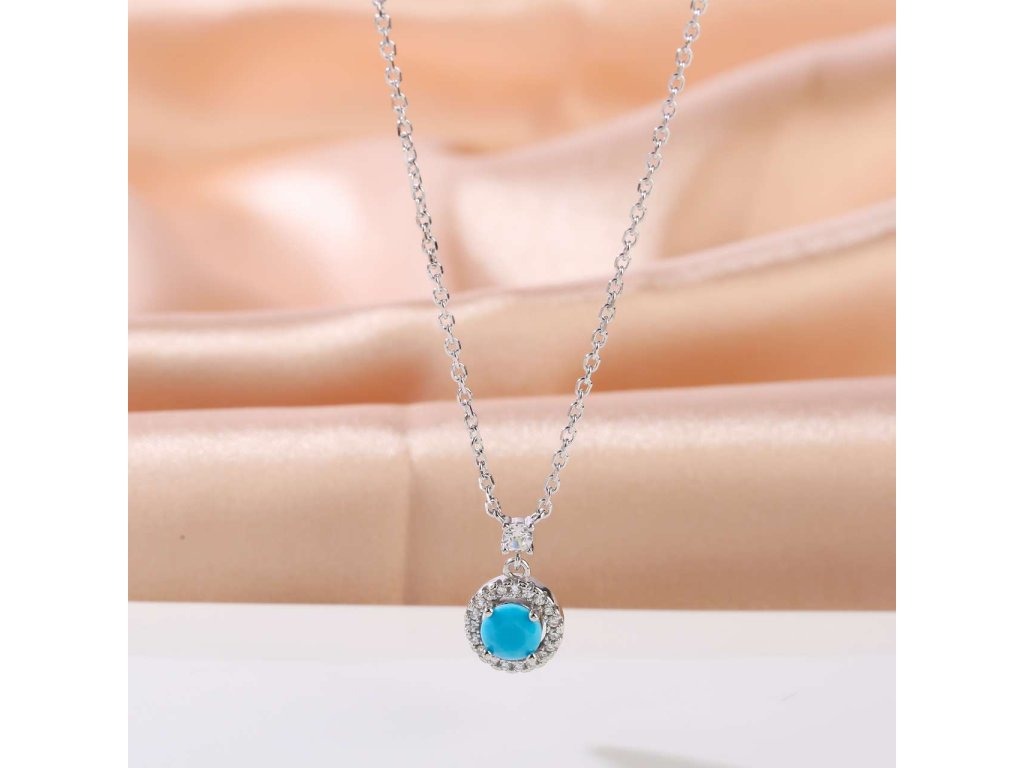 Opravdu krásný stříbrný řetízek s přívěskem (925/1000) s neobvyklým světle modrým kamenem a drobnými bílými zirkony. Řetízek má nastavitelnou délku. Šperk je chráněn povrchovou úpravou rhodiováním, které jej chrání před oxidací. Všechno naše zboží je značeno puncovními značkami uznanými Puncovním úřadem ČR.Doplňkové parametry