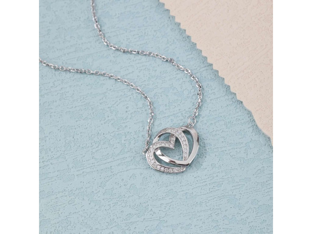 Romantický řetízek s přívěskem ze stříbra (925/1000) s propletenými srdíčky - hladkým a se zirkony nejen pro citlivé duše.. Řetízek typu naker s nastavitelnou délkou. Povrchová vrstva rhodia chrání před oxidací a zároveň prodlužuje životnost šperku. Všechno naše zboží je označeno puncovními značkami uznanými Puncovním úřadem ČR.Doplňkové parametry