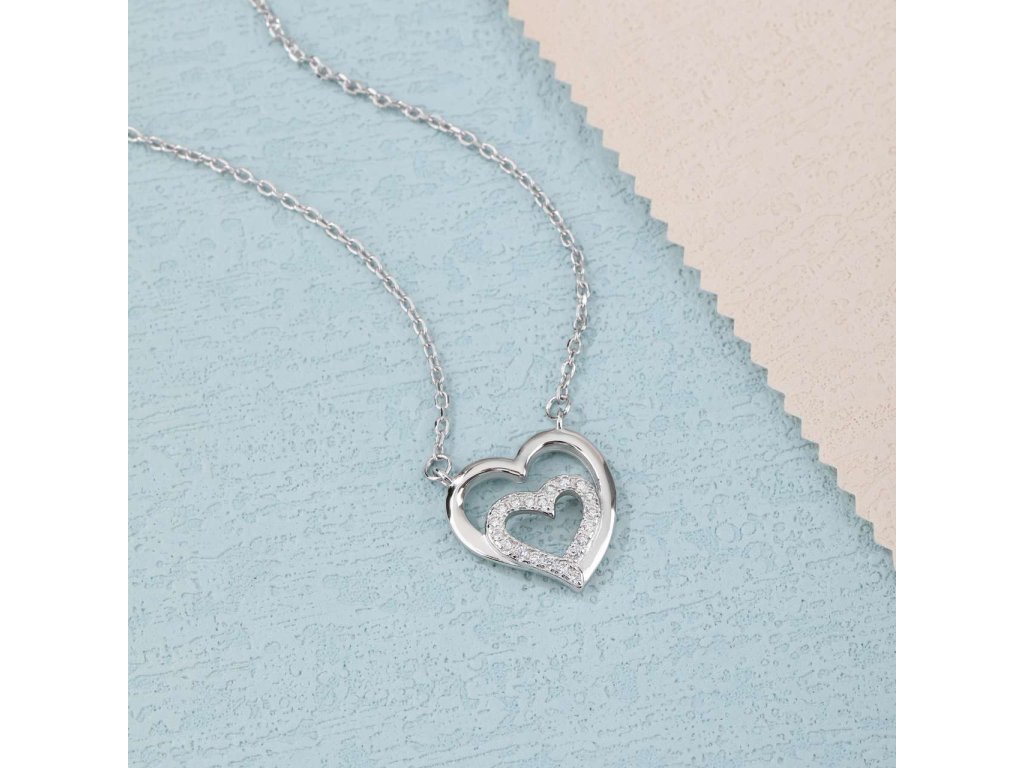 Romantický řetízek s přívěskem ze stříbra (925/1000) s propletenými srdíčky - hladkým a se zirkony nejen pro citlivé duše.. Řetízek typu naker s nastavitelnou délkou. Povrchová vrstva rhodia chrání před oxidací a zároveň prodlužuje životnost šperku. Všechno naše zboží je označeno puncovními značkami uznanými Puncovním úřadem ČR.Doplňkové parametry