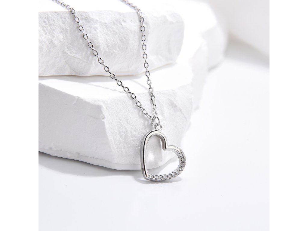 Elegantní řetízek s přívěskem ze stříbra (925/1000) ve tvaru srdce, které je z poloviny osázené zirkony. Řetízek je typu anker a má nastavitelnou délku. Stříbro je povrchově upraveno rhodiováním proti oxidaci. Všechno naše zboží je označeno puncovními značkami uznanými Puncovním úřadem ČR.Doplňkové parametry