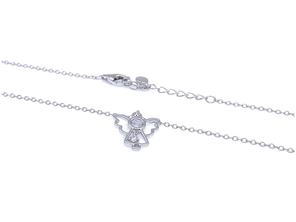 Elegantní řetízek vzoru anker s přívěskem ze stříbra ( 925/1000) s nastavitelnou délkou. Přívěsek je ve tvaru anděla, který má hlavičku a tělo zdobené bílým zirkonem. Povrchová vrstva rhodia chrání před oxidací a zároveň prodlužuje životnost šperku. Všechno naše zboží je označeno puncovními značkami uznanými Puncovním úřadem ČR.Doplňkové parametry
