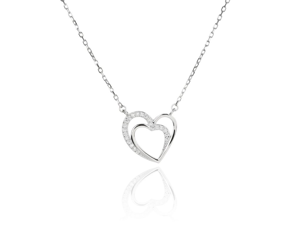 Luxusní řetízek s přívěskem ze stříbra (925/1000). Přívěsek má tvar dvou srdcí. Jedno je hladké a druhé je osázená zirkony. Řetízek je typu anker s nastavitelnou délkou. Stříbro je povrchově upraveno rhodiováním proti oxidaci. Všechno naše zboží je označeno puncovními značkami uznanými Puncovním úřadem ČR.Doplňkové parametry