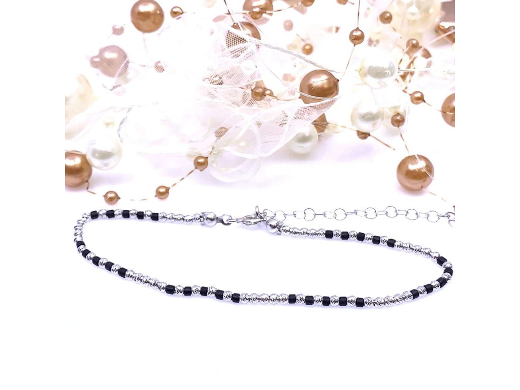 Třpytivý náramek ze stříbra ( 925/1000) potěší nejen černými korálky, ale také broušenými kuličkami, které vytvářejí nádherný lesk. Délka je nastavitelná. Stříbro je povrchově upraveno rhodiováním proti oxidaci. Všechno naše zboží je značeno puncovními značkami, které jsou uznány Puncovním úřadem ČR.Doplňkové parametry