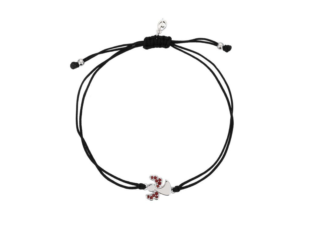 Moderní náramek se stahovací šňůrkou a stříbrnou ozdobou (925/1000) s ) s motivem andělíčka se stále oblíbenými českými granáty. Pravost kamenů je doložena certifikátem o původu. Stříbro je povrchově upraveno rhodiováním, které se postará o dlouhodobý lesk a ochranu před oxidací šperku. Všechno naše zboží je označeno puncovními značkami uznanými Puncovním úřadem ČR.Doplňkové parametry