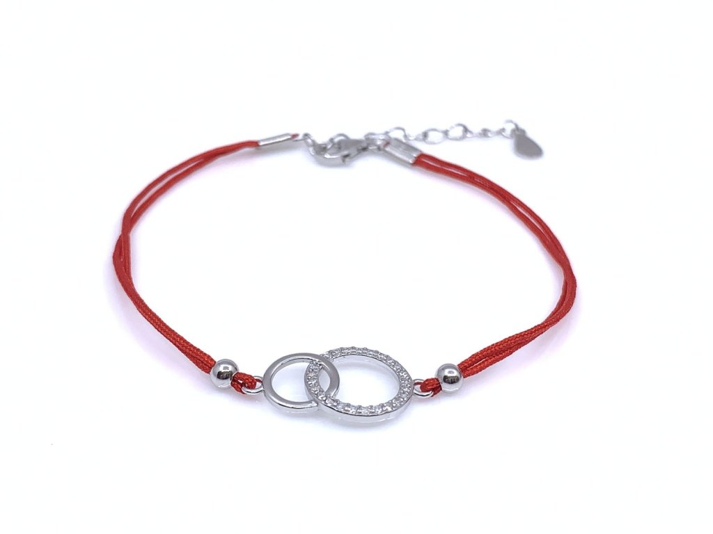 Krásný stylový náramek ze stříbra (925/1000) s trendy šňůrkovým řetízkem červené barvy budete držet krok s módou. navíc zdobený dvojkroužkem se zirkony. Délka je nastavitelná.Šperk je chráněn povrchovou úpravou rhodiováním, které jej chrání před oxidací. Všechno naše zboží je označeno puncovními značkami uznanými Puncovním úřadem ČR.Doplňkové parametry