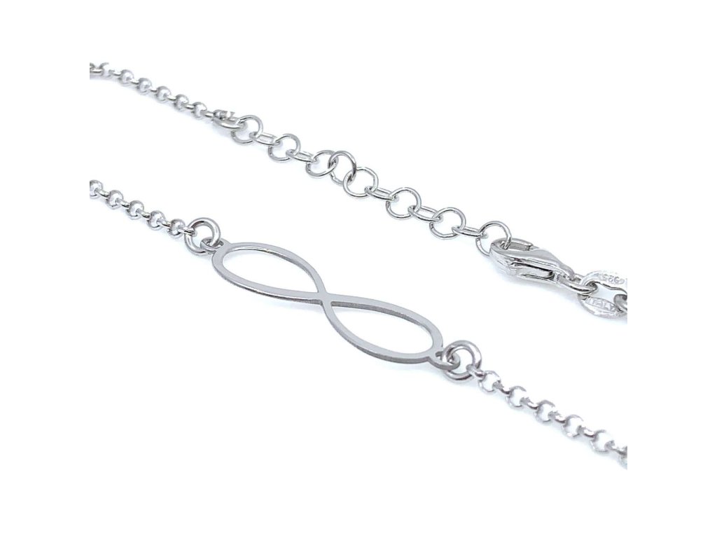 Elegantní dámský náramek ze stříbra (925/1000) s ozdobou ve tvaru hladkého nekonečna. Náramek je vzoru rolo s nastavitelnou délkou. Šperk je chráněn povrchovou úpravou rhodiováním, které jej chrání před oxidací. Všechno naše zboží je označeno puncovními značkami uznanými Puncovním úřadem ČR.Doplňkové parametry
