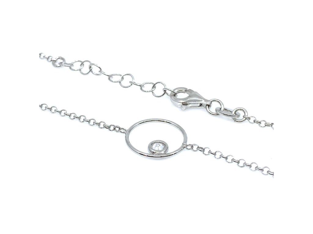Dámský náramek ze stříbra (925/1000). Hlavní ozdobou náramku je hladké kolečko, které má ve spodní části malý bílý zirkon. Náramek je vzoru rolo s nastavitelnou délkou. Šperk je chráněn povrchovou úpravou rhodiováním, které jej chrání před oxidací. Všechno naše zboží je označeno puncovními značkami uznanými Puncovním úřadem ČR.Doplňkové parametry