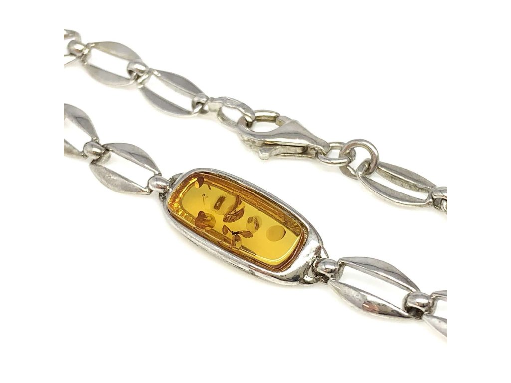 Moderní dámský náramek ze stříbra (925/1000) potěší každou ženu. Náramek článkového typu s oválem, který je z jantaru. Stříbro je povrchově upraveno rhodiováním pro dlouhodobé udržení lesku. Všechno naše zboží je značeno puncovními značkami uznanými Puncovním úřadem ČR.Doplňkové parametry