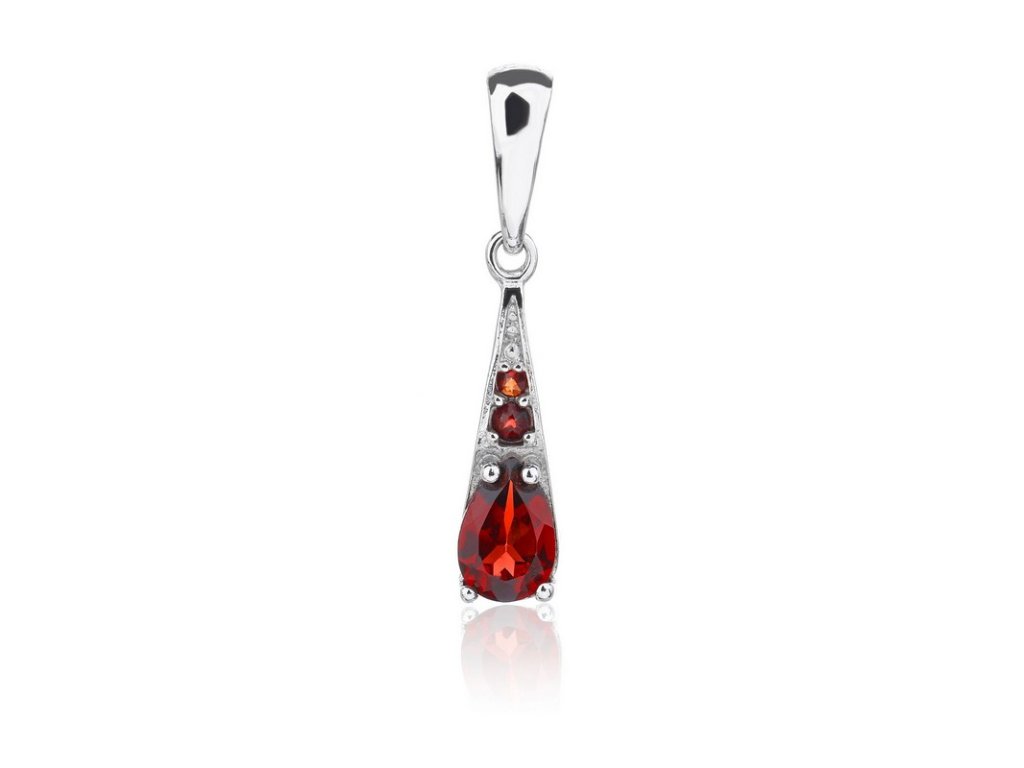 Dámský přívěsek ze stříbra (925/1000) ve tvaru kapky, který je osazený Českými granáty. Ke šperku obdržíte certifikát o pravosti kamene. Stříbro je povrchově upraveno rhodiováním proti oxidaci. Všechno naše zboží je označeno puncovními značkami uznanými Puncovním úřadem ČR.Doplňkové parametry