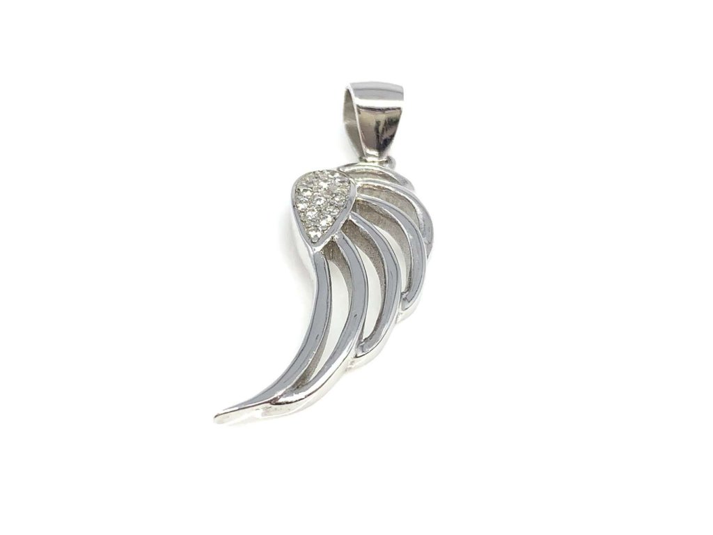 Krásný dámský přívěsek ze stříbra (925/1000) ve tvaru andělského křídla, které je v provedení velkého lesku a částečně zdobené drobnými bílými zirkony. Povrchová úprava rhodiem poskytuje šperku ochranu proti oxidaci. Všechno naše zboží je označeno puncovními značkami uznanými Puncovním úřadem ČR.Doplňkové parametry