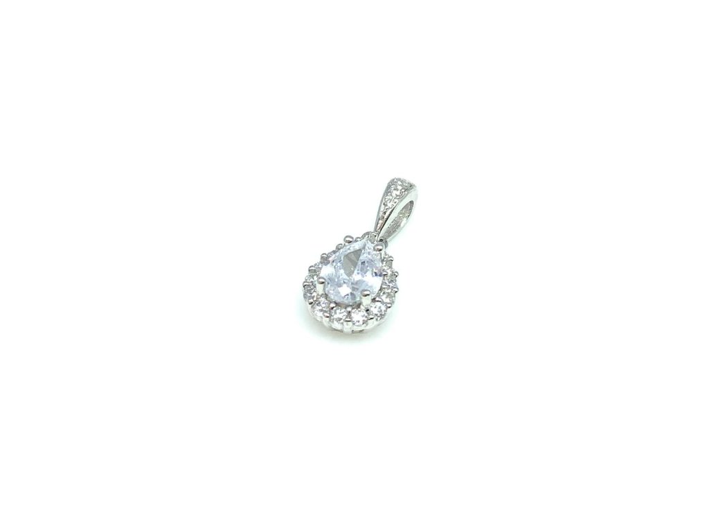 Elegantní dámský přívěsek ze stříbra (925/1000) ve tvaru kapky, která je osázená velkým centrálním bílým zirkonem a drobnými bílými zirkony po obvodu. Šperk je chráněn povrchovou úpravou rhodiováním, které jej chrání před oxidací. Všechno naše zboží je označeno puncovními značkami uznanými Puncovním úřadem ČR.Doplňkové parametry