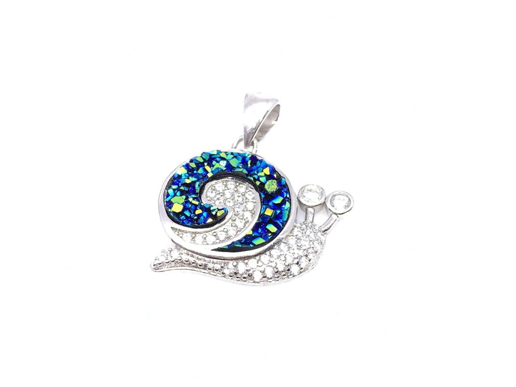 Roztomilý přívěsek ze stříbra ( 925/1000) ve tvaru šnečka, který je nádherně osazen modrými a bílými zirkony. Stříbro je povrchově upraveno rhodiováním proti oxidaci. Všechno naše zboží je označeno puncovními značkami uznanými Puncovním úřadem ČR.Doplňkové parametry