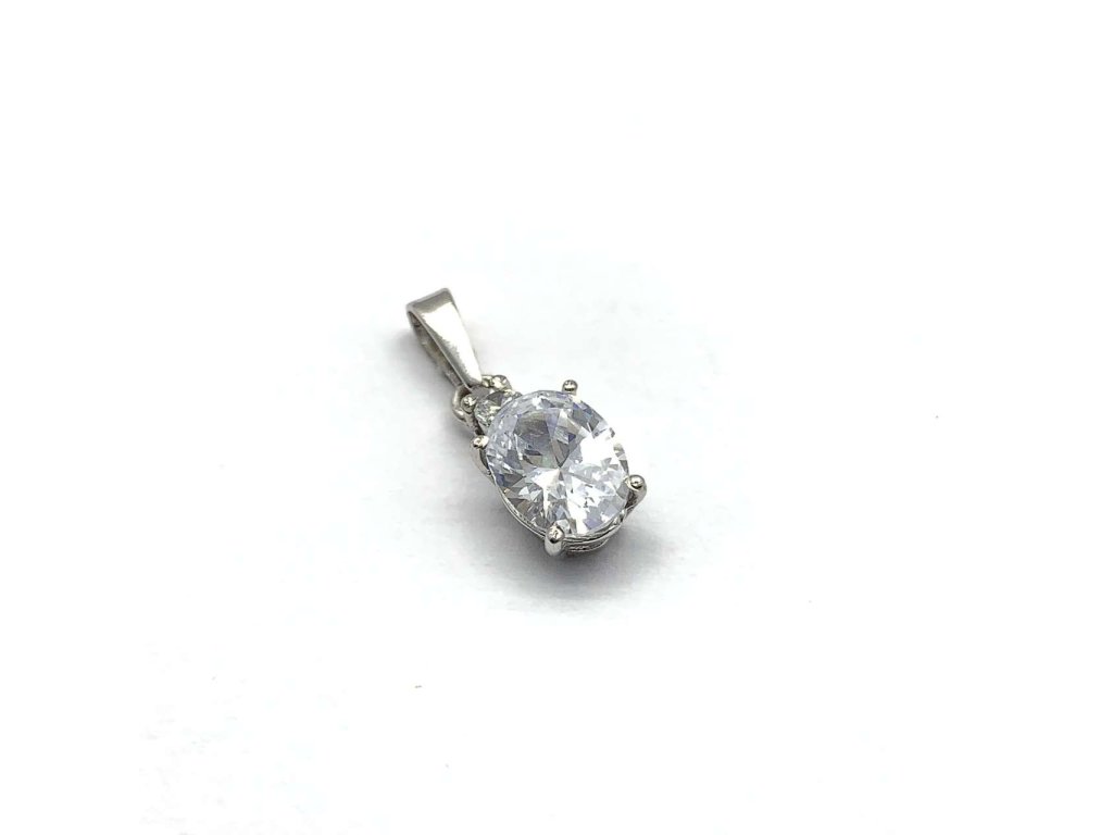 Elegantní dámský přívěsek ze stříbra (925/1000) oválného tvaru, kterému dominuje velký bílý centrální zirkon doplněný jedním drobným zirkonem. Šperk je chráněn povrchovou úpravou rhodiováním, které jej chrání před oxidací. Všechno naše zboží je označeno puncovními značkami uznanými Puncovním úřadem ČR.Doplňkové parametry