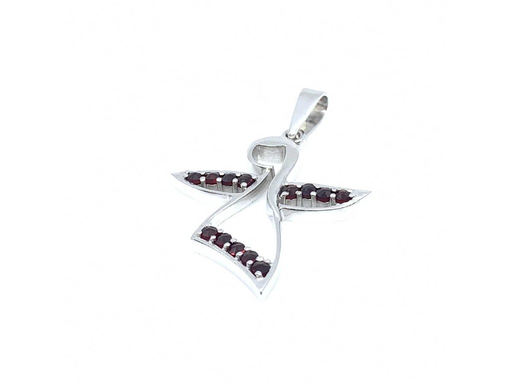 Dámský přívěsek ze stříbra (925/1000) má tvar anděla, který je po obvodu hladký. V dolní části a na křídlech jsou malé České granáty. Ke šperku obdržíte certifikát o pravosti kamene. Povrchová úprava rhodium poskytuje šperku ochranu proti oxidaci. Všechno naše zboží je označeno puncovními značkami uznanými Puncovním úřadem ČR.Doplňkové parametry