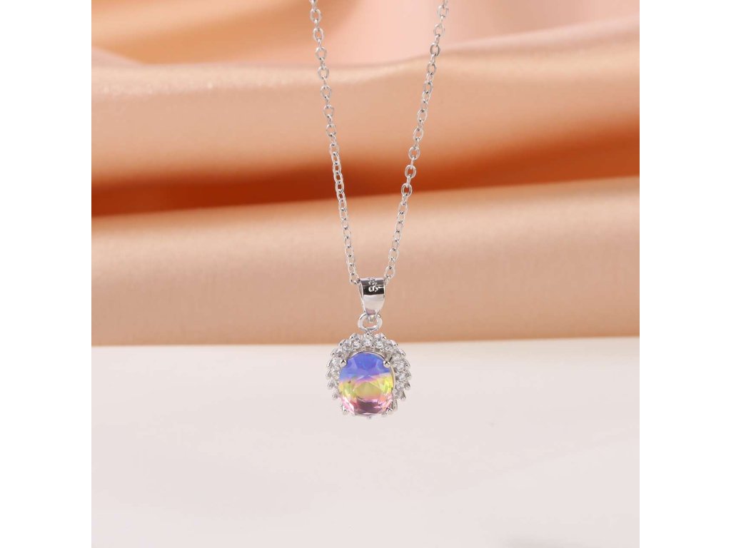 Decentní dámský přívěsek ze stříbra (925/1000) oválného tvaru s velkým centrálním zirkonem v barvě modro žluté, kolem kterého jsou vsazeny drobné bílé zirkony. Stříbro je povrchově upraveno rhodiováním proti oxidaci. Všechno naše zboží je označeno puncovními značkami uznanými Puncovním úřadem ČR.Doplňkové parametry