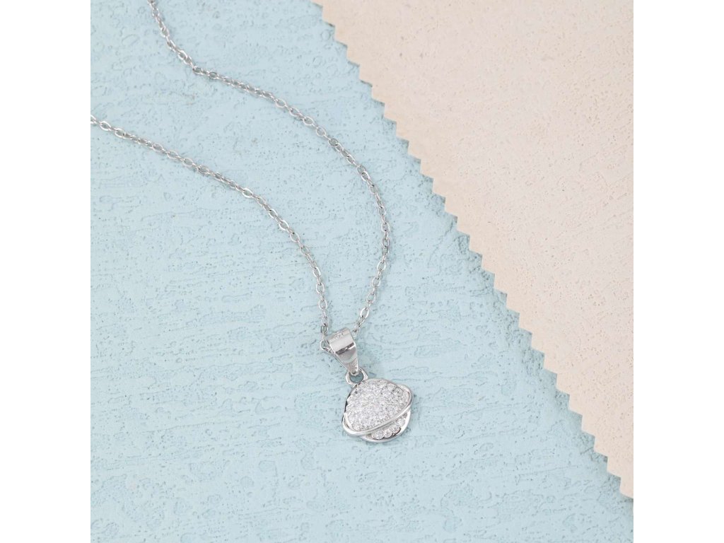 Jemný a velmi zajímavý přívěsek ze stříbra (925/1000) připomínající planetu Saturn. který je zdoben po celé ploše bílými zirkony. Šperk je chráněn povrchovou úpravou rhodiováním, které jej chrání před oxidací. Všechno naše zboží je označeno puncovními značkami uznanými Puncovním úřadem ČR.Doplňkové parametry