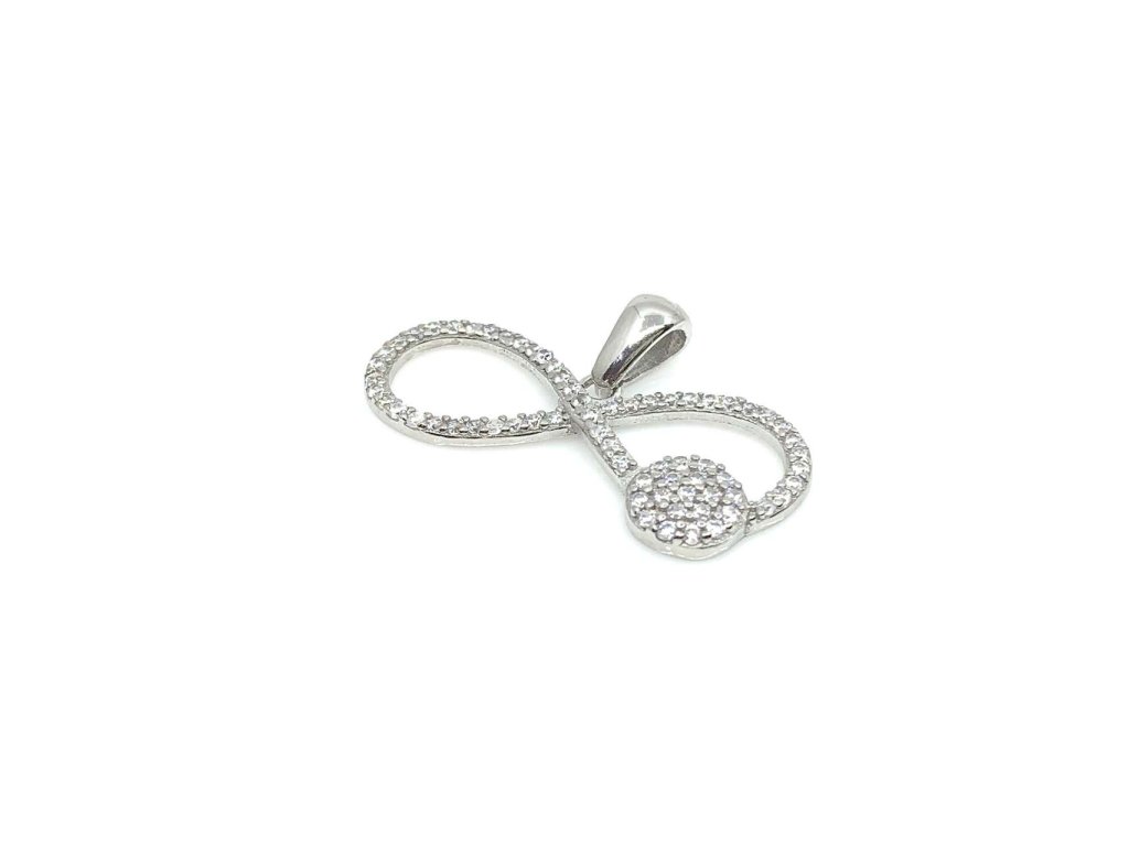 Exkluzivní dámský přívěsek ze stříbra (925/1000) ve tvaru nekonečna, které je osázené drobnými bílými zirkony a jeden oblouček zdobí drobné kolečko. Šperk je chráněn povrchovou úpravou rhodiováním, které jej chrání před oxidací. Všechno naše zboží je označeno puncovními značkami uznanými Puncovním úřadem ČR.Doplňkové parametry