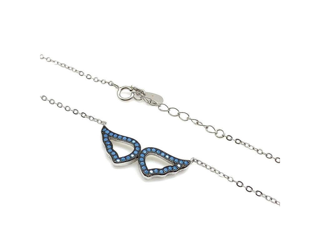Kouzelný řetízek s přívěskem ze stříbra (925/1000). Přívěsek je ve tvaru andělských křídel, které jsou osazené modrými zirkony. Řetízek je vzoru anker s nastavitelnou délkou. Povrchová úprava rhodiem zajistí šperku lesk a odolnost. Všechno naše zboží je označeno puncovními značkami uznanými Puncovním úřadem ČR.Doplňkové parametry