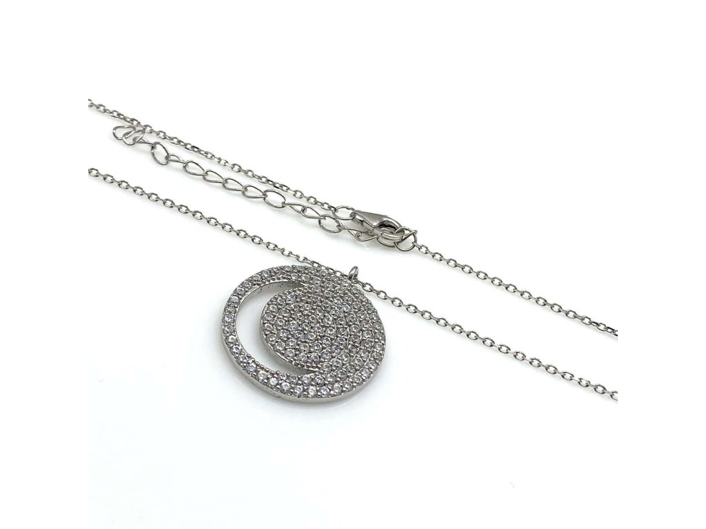 Moderní řetízek s přívěskem ze stříbra (925/1000). Přívěsek má kulatý tvar, který je vyplněný malými bílými zirkony. Řetízek je typu anker s nastavitelnou délkou. Povrchová úprava rhodiem zajistí šperku lesk a odolnost. Všechno naše zboží je označeno puncovními značkami uznanými Puncovním úřadem ČR.Doplňkové parametry