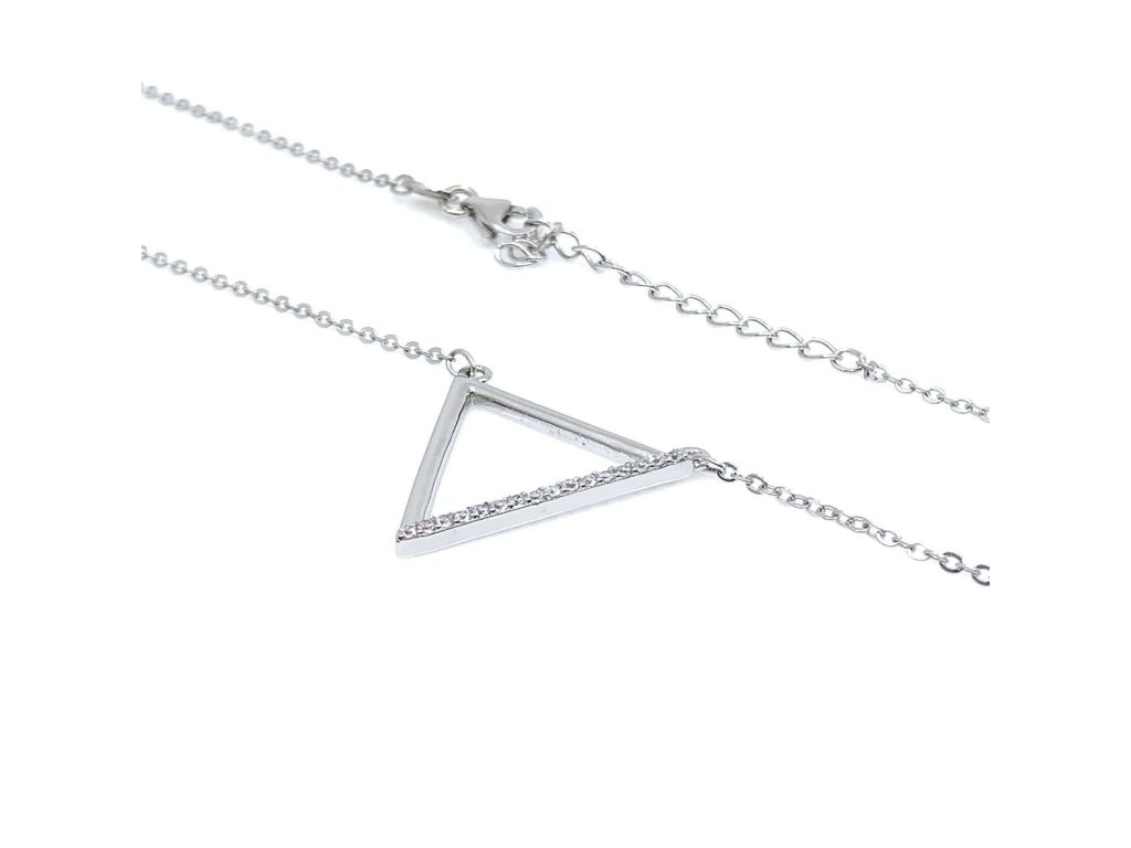 Krásný dámský řetízek s přívěskem ze stříbra (925/1000). Přívěsek má tvar trojúhelníku, který je na jedné straně osázený malými bílými zirkony. Řetízek je typu anker s nastavitelnou délkou. Šperk je chráněn povrchovou úpravou rhodiováním, které jej chrání před oxidací. Všechno naše zboží je označeno puncovními značkami, které jsou uznány Puncovním úřadem ČR.Doplňkové parametry