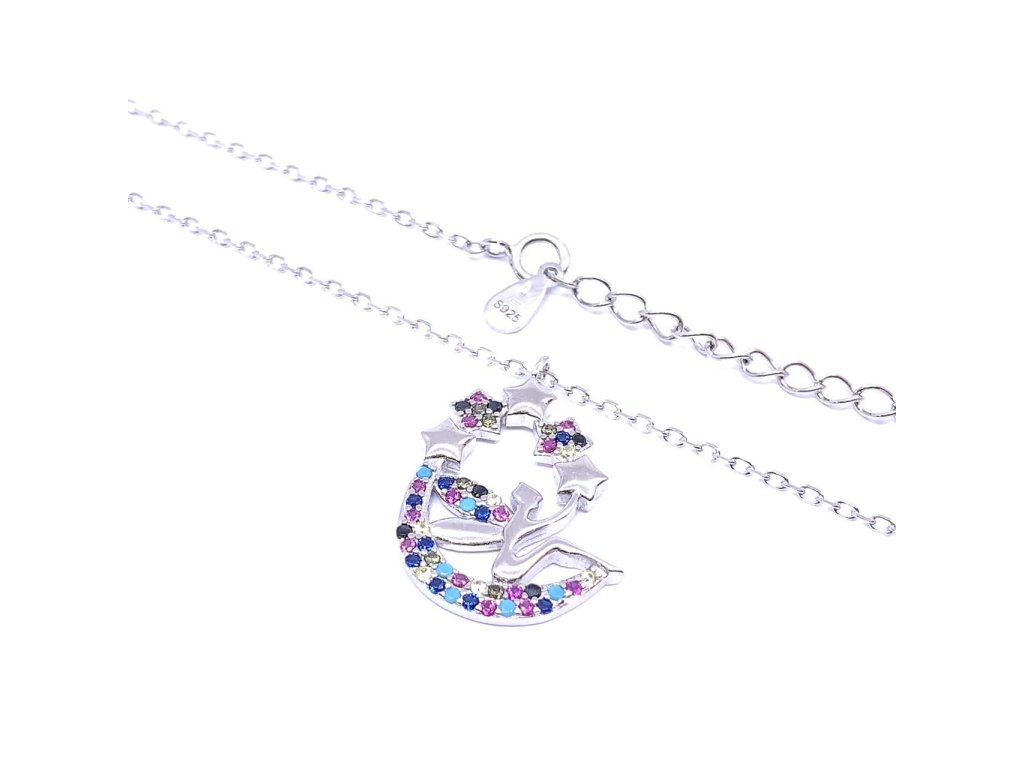 Zajímavý řetízek s přívěskem ze stříbra (925/1000) s nastavitelonou délkou řetízku anker. Ozdoba připomíná měsíc, který je osázen různobarevnými kameny a uprostřed je postava víly držící hvězdičku. Šperk je chráněn povrchovou úpravou rhodiováním, které jej chrání před oxidací. Všechno naše zboží je označeno puncovními značkami uznanými Puncovním úřadem ČR.Doplňkové parametry
