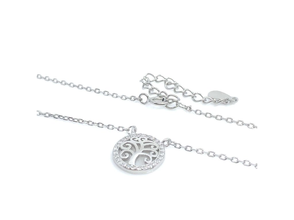 Dámský řetízek s přívěskem ze stříbra (925/1000). Přívěsek má kulatý tvar, který má uprostřed hladký strom života. Obvod kruhu je osázen malými bílými zirkony. Řetízek je typu anker a má nastavitelnou délku. Šperk je chráněn povrchovou úpravou rhodiováním, které jej chrání před oxidací. Všechno naše zboží je označeno puncovními značkami uznanými Puncovním úřadem ČR.Doplňkové parametry