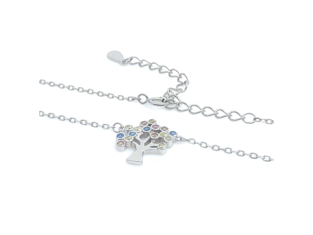 Dámský řetízek s přívěskem ze stříbra (925/1000). Přívěsek má tvar stromu života, který je hladký. Koruna je osázena různě barevnými zirkony. Řetízek je typu anker a má nastavitelnou délku. Šperk je chráněn povrchovou úpravou rhodiováním, které jej chrání před oxidací. Všechno naše zboží je značeno puncovními značkami uznanými Puncovním úřadem ČR.Doplňkové parametry