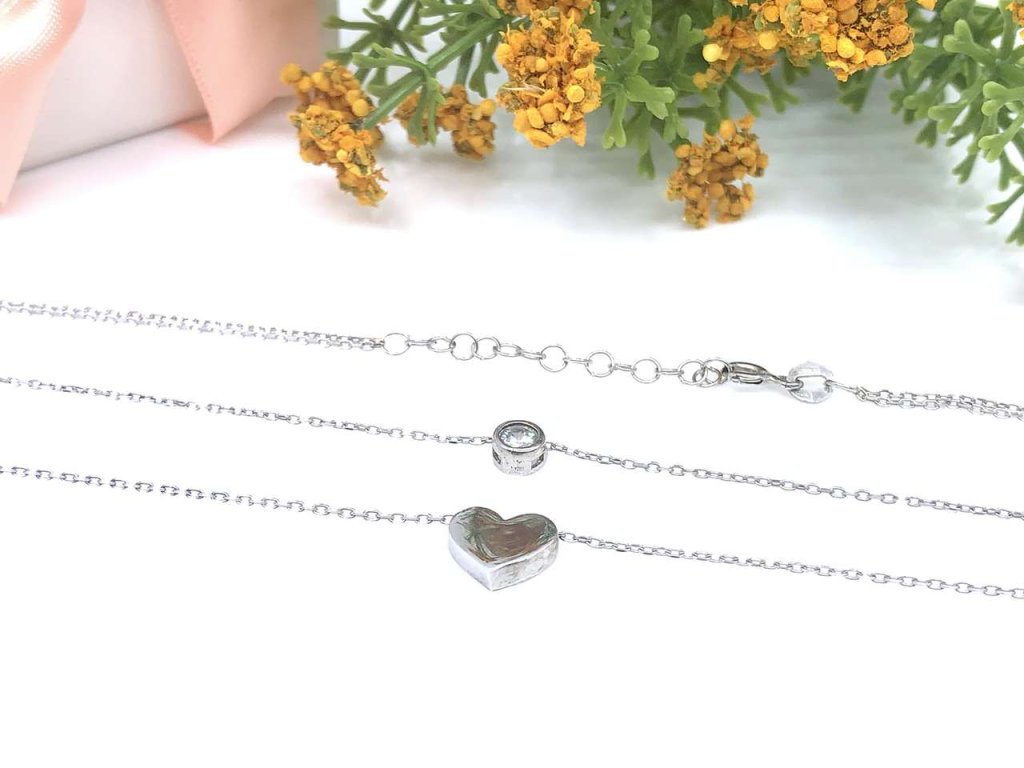 Krásný dámský řetízek s přívěskem ze stříbra (925/1000) s nastavitelnou délkou. Přívěsky jsou ve tvaru plného srdce a bílého zirkonu, který je zasazený do hladké obruby. Řetízek je typu anker a je dvojitý. Šperk je chráněn povrchovou úpravou rhodiováním, které jej chrání před oxidací. Všechno naše zboží je označeno puncovními značkami uznanými Puncovním úřadem ČR.Doplňkové parametry